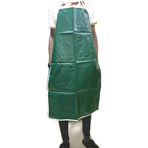 Green PVC-coated rubber Chemical Apron for protection from acid/alkali / hazardous chemicals, wearable for long hours. It is commonly used in the laboratory and the industrial workplace.