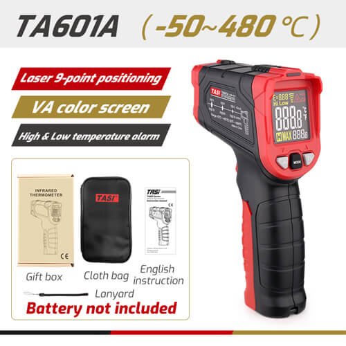 - Digital Infrared Thermometer TA601A Laser Positioning Temperature Meter VIA Color LCD Light Alarm Non-Contact Temperature Gun.