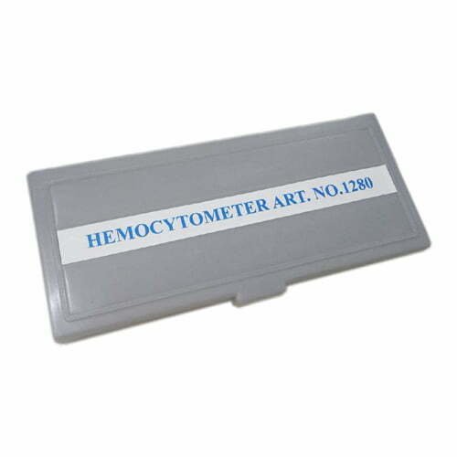 This hemocytometer is designed and used to count blood cells in the laboratory. Including one set of counting chambers, one set of blood-diluting pipettes for red corpuscles, one set of blood-diluting pipettes for white corpuscles, and one set of blood cover glass. Made in China.