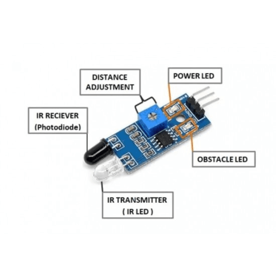 - An infrared obstacle sensor module has a built-in IR transmitter and IR receiver.