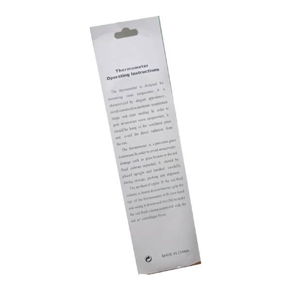 This thermometer is lightweight, easy to hang, and made with a durable plastic body and precision glass tube filled with red fluid for accurate readings. It covers a temperature range of -50°C to +50°C (-60°F to +120°F), making it suitable for different climates.