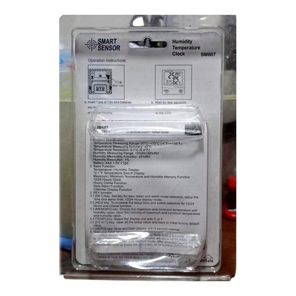 Smart Sensor Temperature Humidity Clock SM807 is a compact and multifunctional digital device designed to accurately monitor temperature, humidity, and time in any indoor environment. Ideal for homes, laboratories, offices, greenhouses, and cleanrooms, this unit helps you maintain optimal environmental conditions with precision and ease.