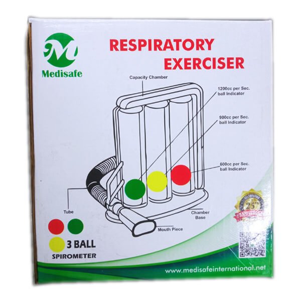 A Spirometer 3 Ball Respiratory Exerciser is a device used to help improve lung function and promote deep breathing. It typically consists of a tube with three chambers, each containing a ball that rises when air is exhaled through the device. The purpose of the exerciser is to encourage deep, controlled breathing to enhance respiratory strength, increase lung capacity, and improve oxygen intake. It is called also a breath exerciser and respirometer.