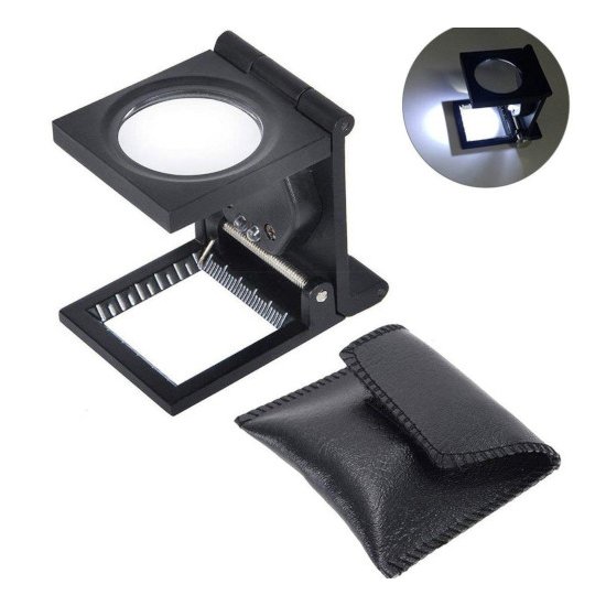 This small magnifying glass can be folded in three ways so that it can be carried easily anywhere. It is a compact design magnifying glass and excellent optics made of high-quality zinc alloy. With it, you can measure in two ways which are in inch and mm units. This magnifying has 2 LED lights that illuminate the inspection area and will become clear for those who are examining small parts or who want to clarify the authenticity of jewelry or who are elderly.