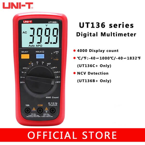 The new generation of Digital Multimeter UT136B+ has an innovative industrial design that ensures that the product can withstand a drop of 2 meters in height. UT136 series is designed to work safely in CAT II1000V/CAT III 600V environment. This series is suitable for civil/commercial use such as HVAC technicians and electricians.
